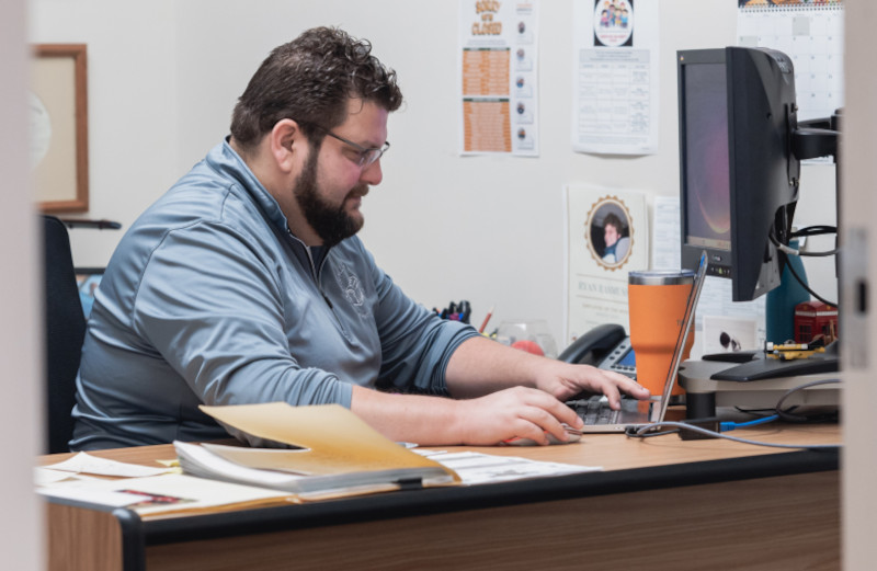 Ryan Rasmussen, executive director of the Oshkosh Area Community Pantry, seen on May 9, 2024, doesn’t expect people to start taking food they don’t need when the state eliminates identification checks at pantries participating in The Emergency Food Assistance Program. “We get this question asked a lot about, ‘How many folks do you think are actually taking advantage of your pantry?’ And quite honestly, my response is zero,” he says. (Shane Fitzsimmons for Wisconsin Watch)
