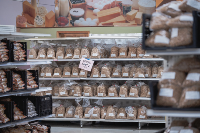 A shelf full of cereal is shown at the Oshkosh Area Community Pantry in Oshkosh, Wis., on May 9, 2024. Wisconsin’s emergency food pantries can now decide whether to check clients’ identification and verify their addresses. By October, the state will require them to stop asking. The overhaul comes as demand for emergency food surges following the expiration of extra FoodShare benefits during the pandemic. (Shane Fitzsimmons for Wisconsin Watch)